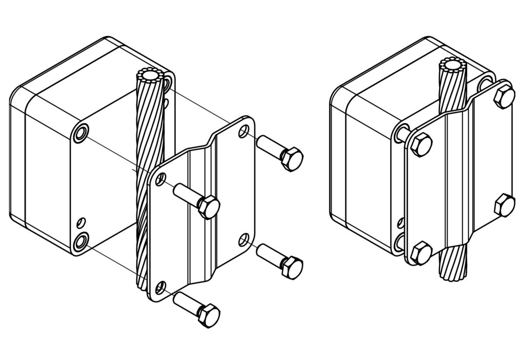 The A.N. Wallis WSPT12SC-0.5-R conforms to BS EN IEC 62561:2018 and is suitable for mounting on round conductors from 5mm to 12mm in diameter and on tape that is 25 to 40mm wide, 1.5 to 5mm thick. For 35mm DIN rail installation for use with cables up to 12mm in diameter, please see part code WSPT12SC-0.5-DIN.